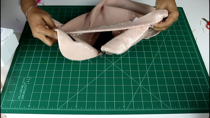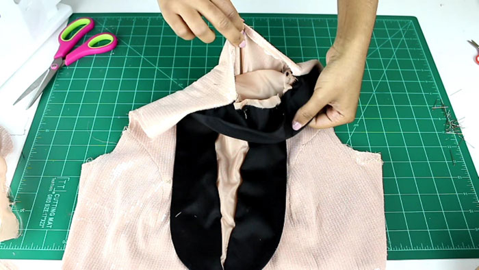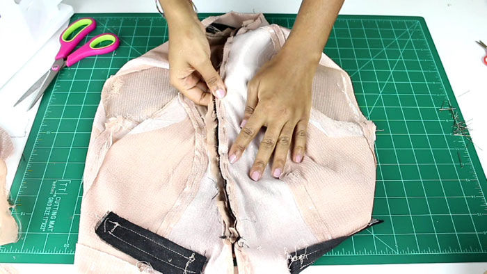 Once sewn together, I removed all of the excess lining