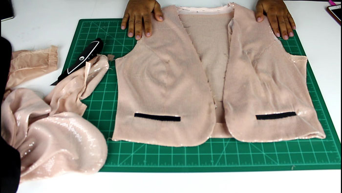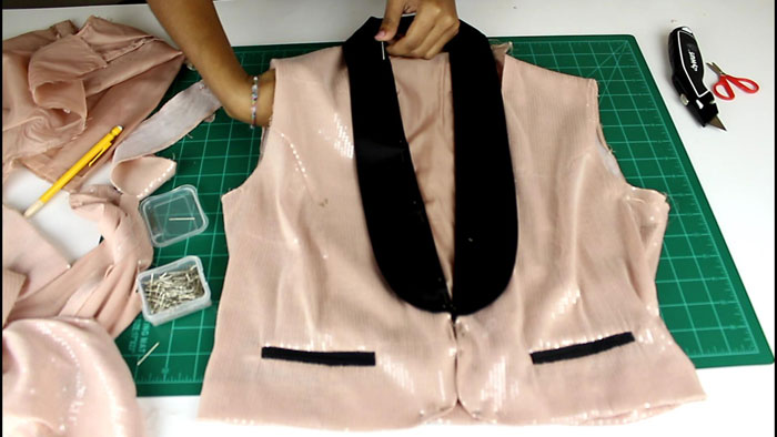 I flipped the blazer inside out and pinned the above piece to it