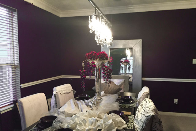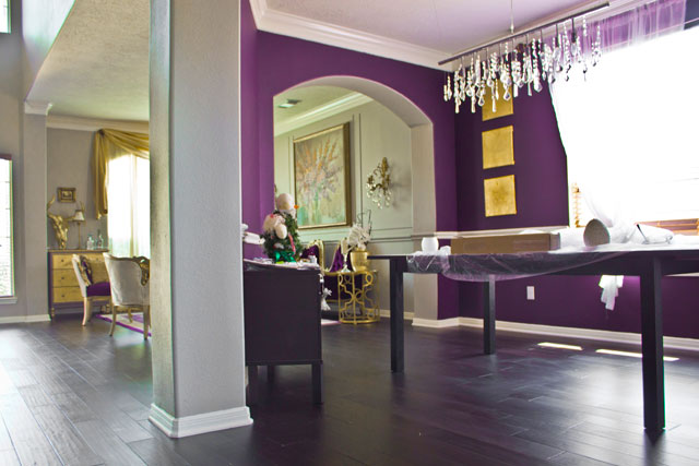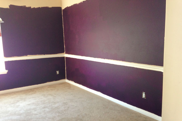 The first thing I did when we moved in was paint. I chose a deep “eggplant” purple for this room. Okay, to be honest, this color was way outside of my “wall color” comfort zone. Luckily the Hubster stepped and chose this color. What do you know, it was a score 🙌🏾.