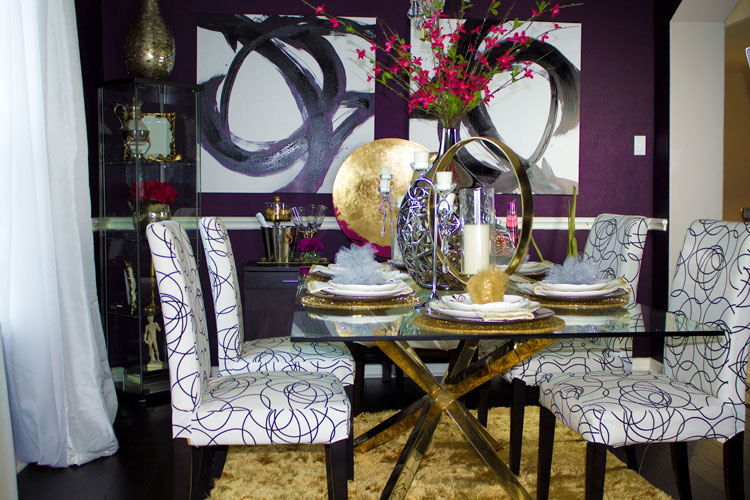 I’m new to your site. Everything is amazing! I don’t know if you’ve changed anything in your dining room. I think you should keep the purple. If you feel it might be too much, just paint the bottom half of wall white. Also, those chairs are great! Don’t reupholster, they mimic your awesome black and white painting!