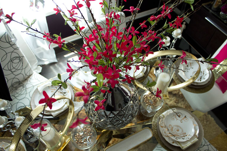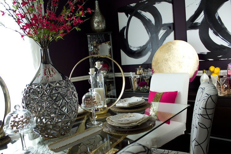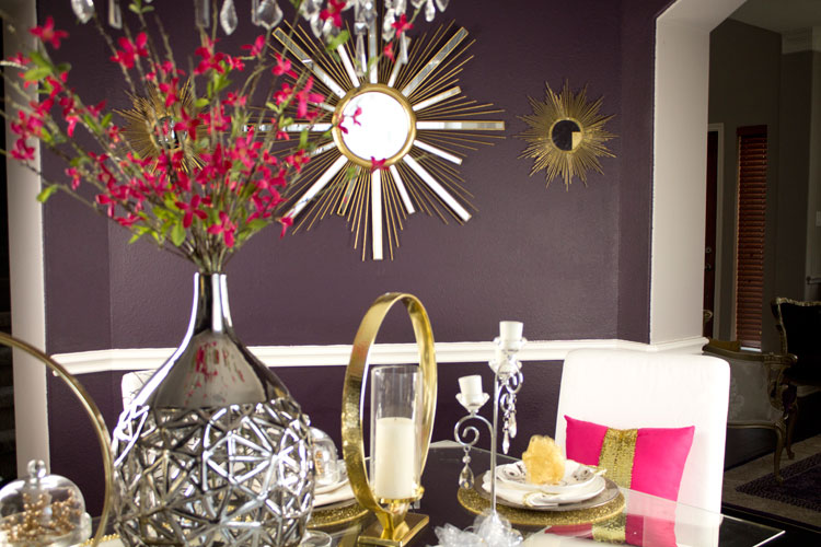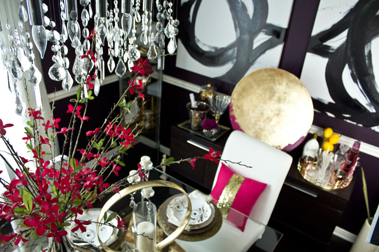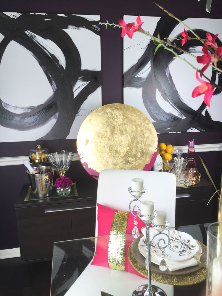 Wooooooooooow! So glam, so chic! I love that plate on your buffet that is gold and pink! What a great DIY and I love artwork! Everything is beautiful! Thank you for participating in the challenge, I hope to have u back for more!