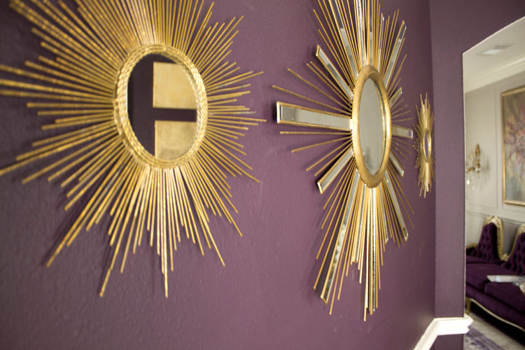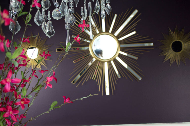 The wall directly across from the curio is where the buffet sat. Now that it has been moved to another wall, I’m able to add some art. I chose three starburst mirrors last minute. I wasn’t sure if I would keep them, but they have truly grown on me.